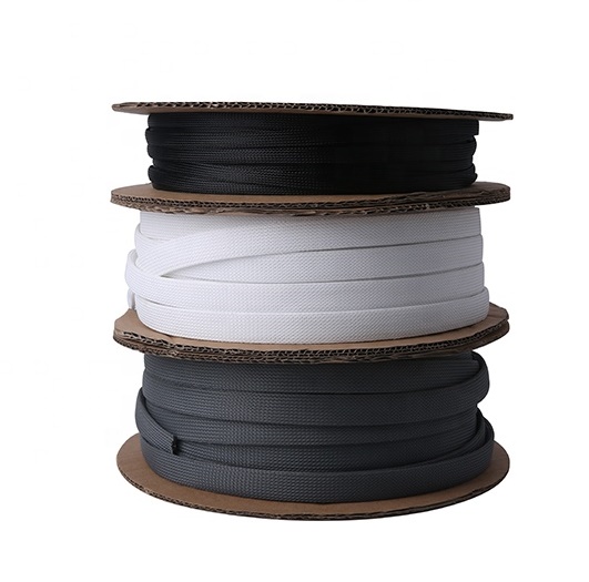 PET expandable braided sleeve is a self extinguishing, halogen free, Polyester monofilament expandable braided sleeve. It offers a continuous working temperature of - 55°C to +150°C, which have a good resistance to abrasion and a high expansion rate.